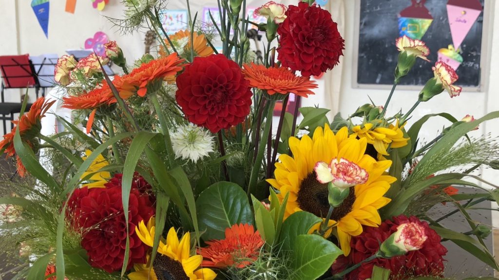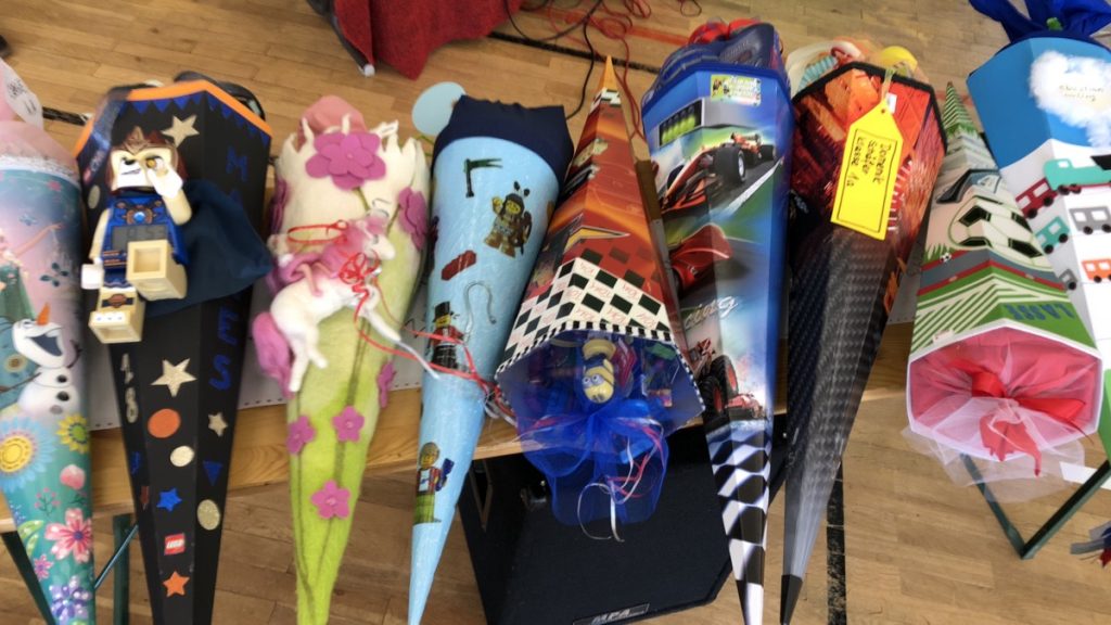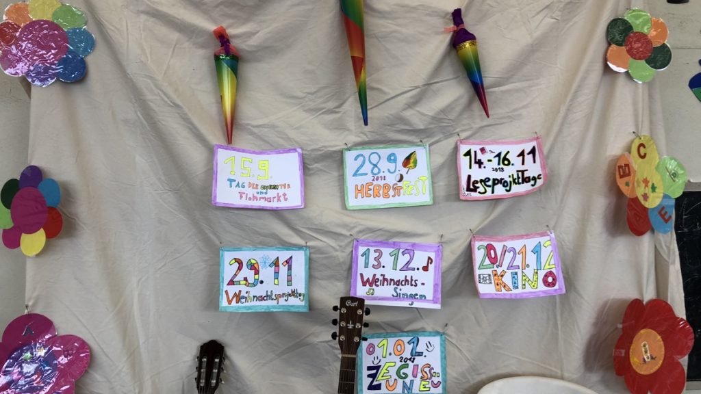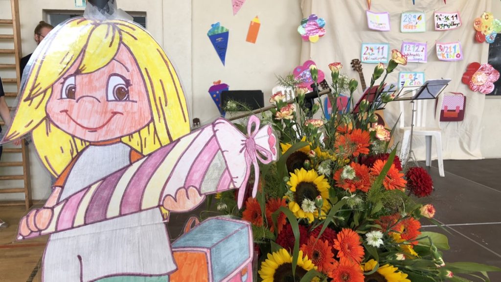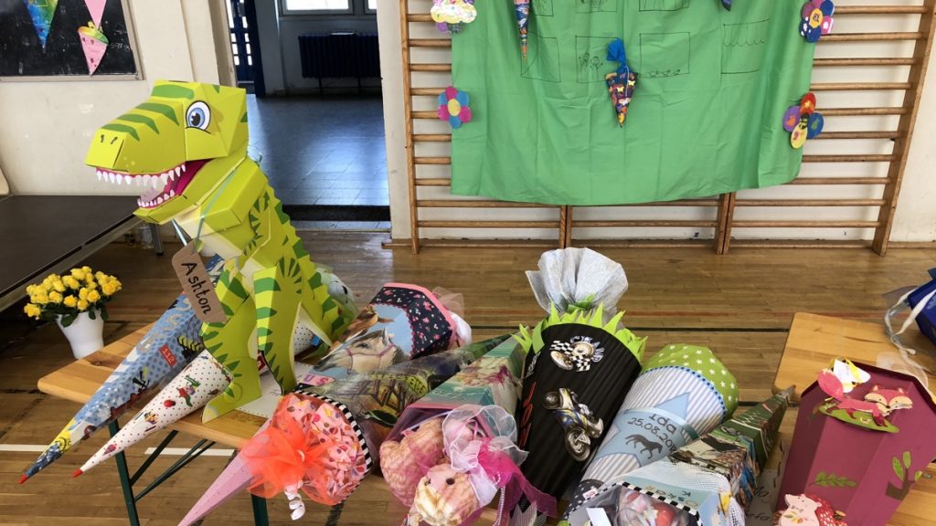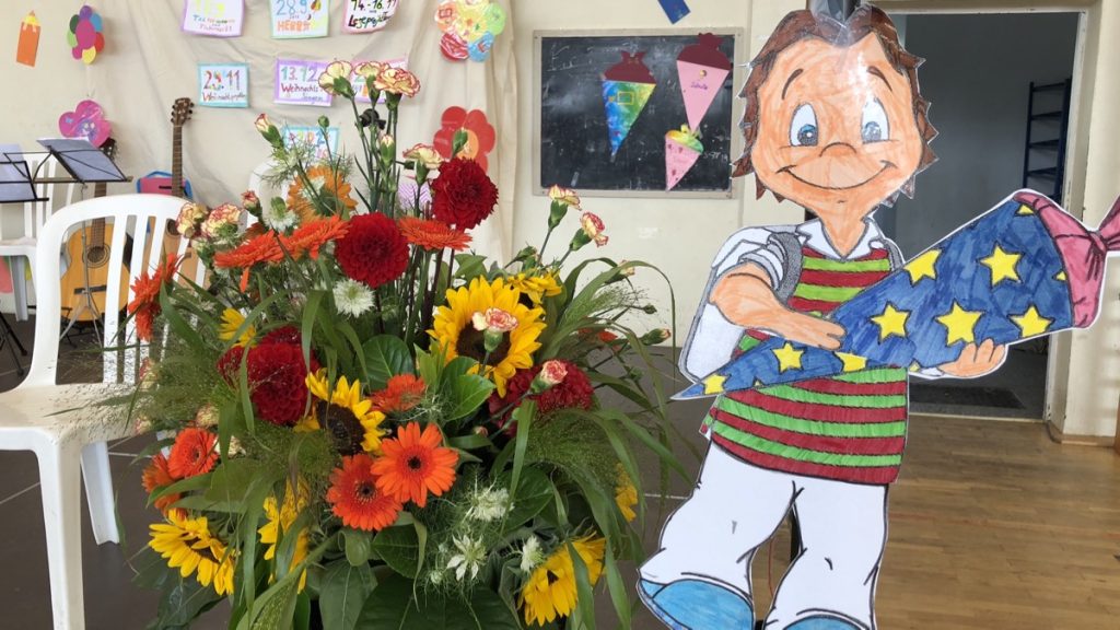 Nach dem Einzug der Kinder in die Turnhalle präsentierten Frau Müller und Frau Kubitschek-Walch mit Kindern der höheren Klassen ein musikalisches Unterhaltungsprogramm. Anschließend bekamen die Kinder ihre Schultüten aus der Hand ihrer neuen Erzieherinnen und Klassenlehrerinnen. Die älteren Kinder schenkten dann jedem neuen Schulkind noch eine gelbe Rose. Den Blumenschmuck hatte der Förderverein organisiert.