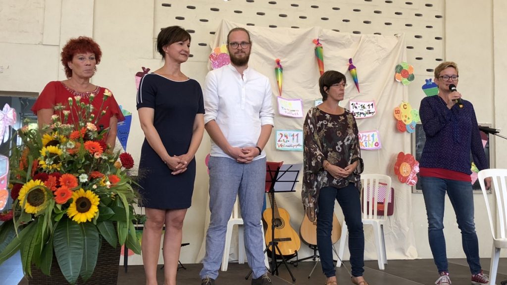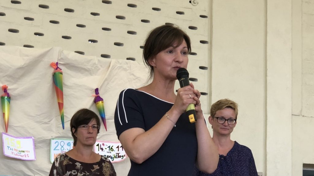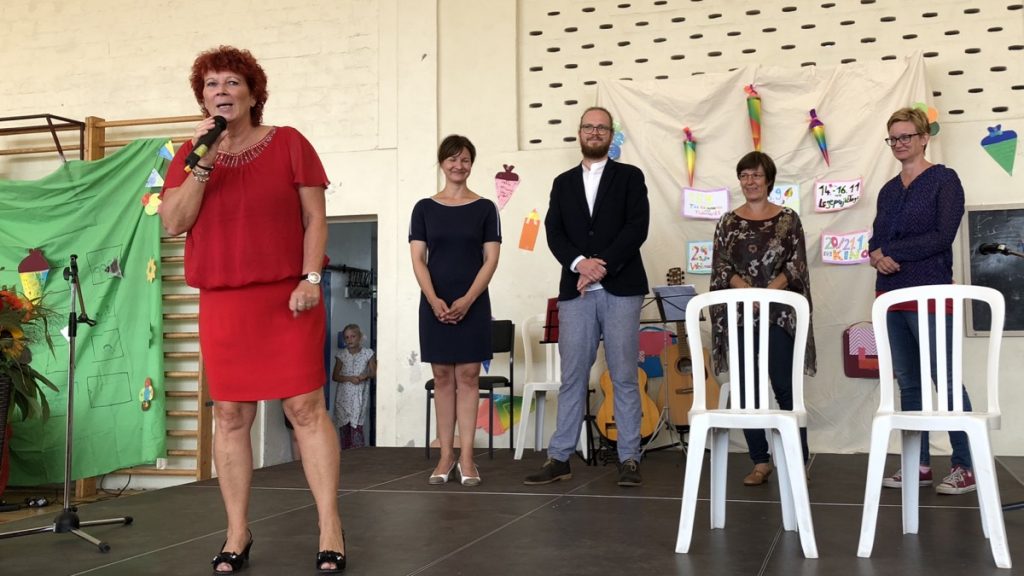 Auch Frau Zepper, die Schulleiterin, rief die Eltern zur aktiven Mitarbeit in der Schule auf. Die Zusammenarbeit zwischen Lehrerinnen, Eltern und Erzieherinnen funktioniere sehr gut. Das sei auch wichtig, da die Schule noch eine Zeitlang diverse Bautätigkeiten zu bewältigen habe. Zur Zeit sind die höheren Klassen ausgelagert, damit das Haupthaus saniert und mit einer größeren Schulmensa ausgestattet wird. Wenn das fertig sei, müsse die Turnhalle ersetzt werden.