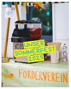 Ein kleiner Rückblick auf unser Sommerfest am 6. Juni 29025 anlässlich des Kindertages: Bei bestem Wetter wurde gemeinsam gefeiert: Neben Würstchen, Slushys und Zuckerwatte konnten die Kinder in der Spielzeugwerkstatt ihrer Kreativität freien Lauf lassen. Diese wurde von Spielmittel e. V. liebevoll umgesetzt – dort entstanden fantasievolle und nachhaltige Spielzeuge. Das Team vom Landhaus lud zum gemeinsamen Tanzen ein, und als musikalisches Highlight gab es ein Konzert von und mit Sascha Kempin, dem Bruder unseres Fördervereinsmitglieds Kevin – ein herzliches Dankeschön für diesen tollen Auftritt!