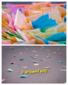 Zum krönenden Abschluss verwandelte das beliebte Farbenfest unseren Schulhof wieder in ein buntes Farbenmeer.